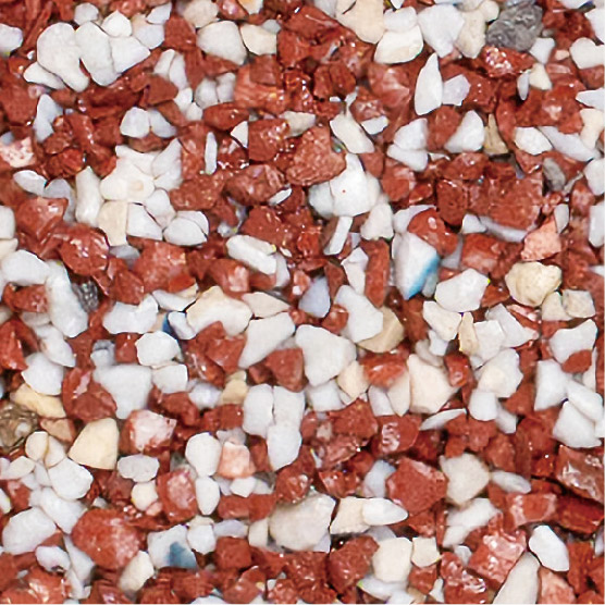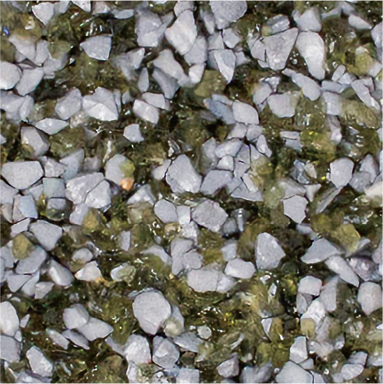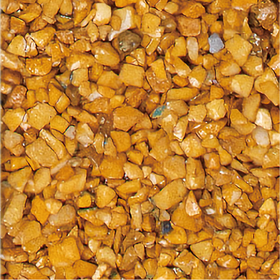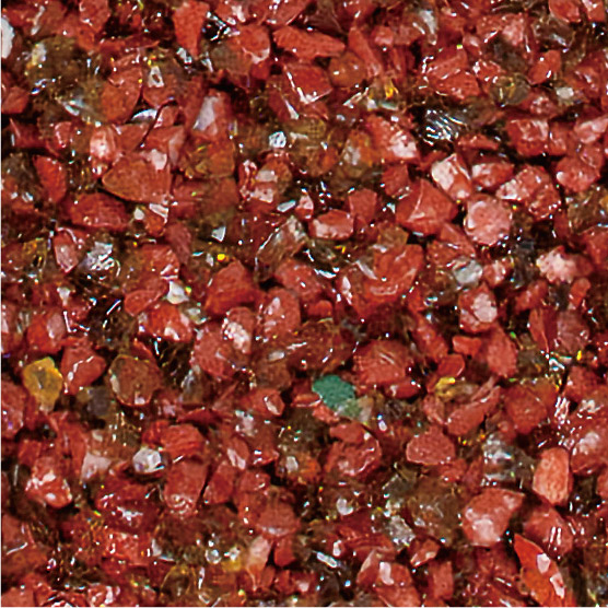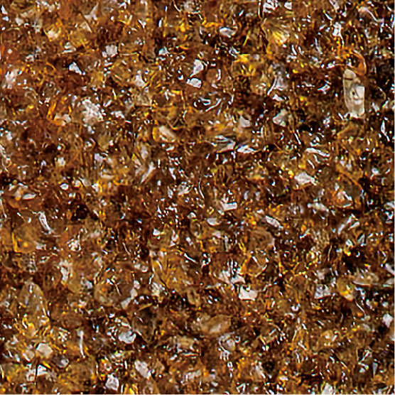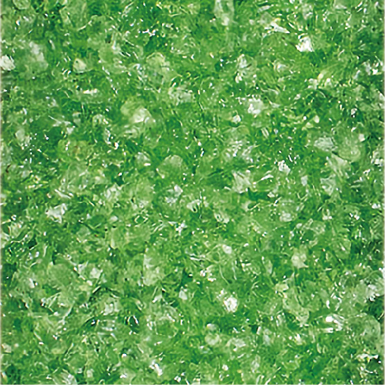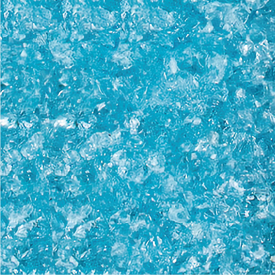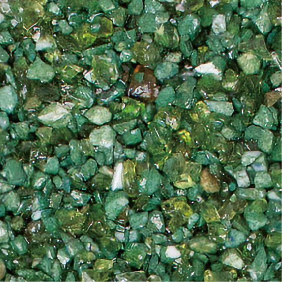 耐久性に優れた無黄変型特殊エポキシ樹脂の使用により施工後の変色が少なく、廃ガラスの色合いを保ちます。使用している廃ガラスはエッジレス加工をしているため、安全で滑りにくい特性があります。