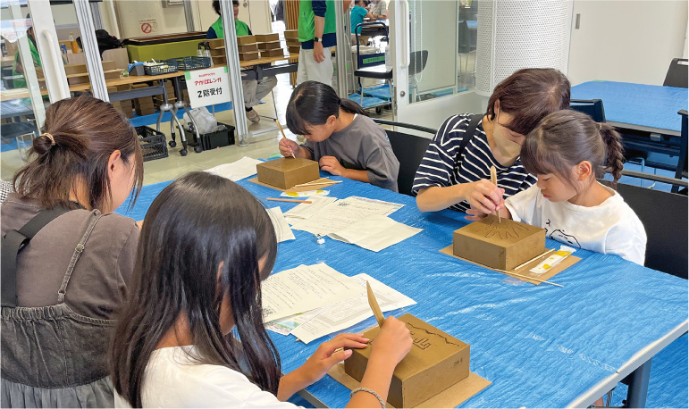 親子で制作したり、友達同士で制作したり様々です。家族との思い出つくり、友達にメッセージ等作品が出来上がって来ます。